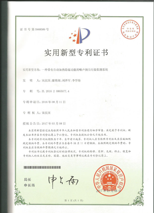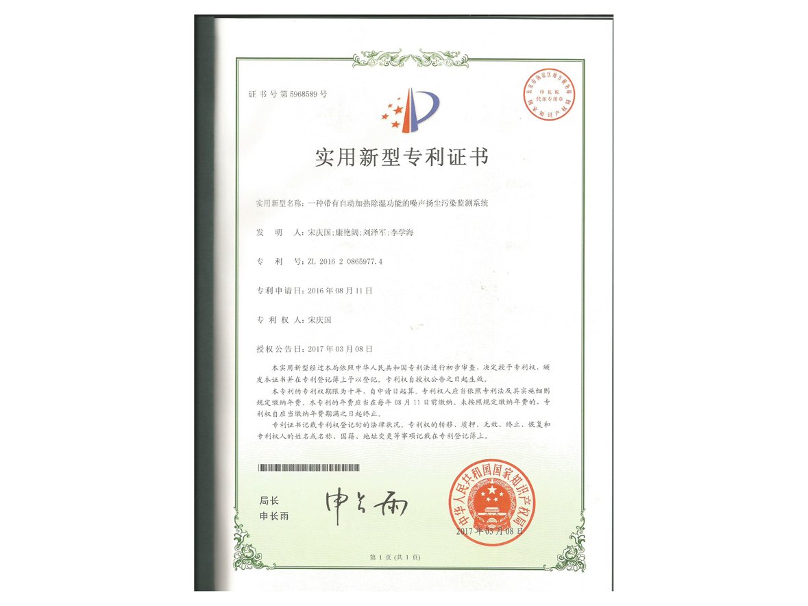 【實(shí)用新型專利】一種帶有自動(dòng)加熱除濕功能的噪聲揚(yáng)塵污染監(jiān)測(cè)系統(tǒng)