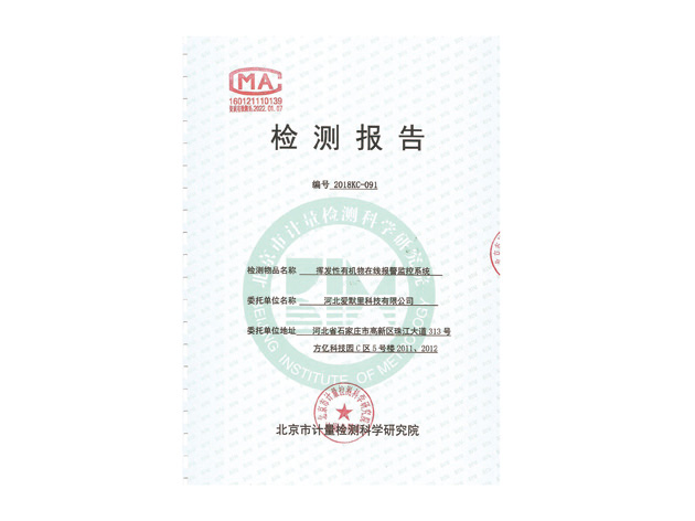 愛默里AMLVOC型揮發(fā)性有機(jī)物在線報(bào)警監(jiān)控系統(tǒng)檢測(cè)報(bào)告