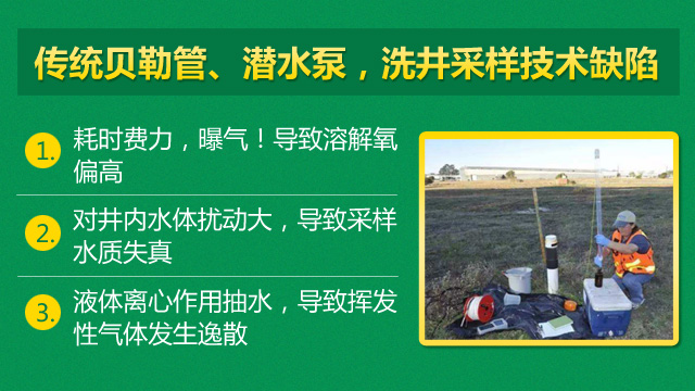 現(xiàn)在用戶普遍頭痛的是生活垃圾填埋場(chǎng)垃圾滲透液,滲透液透過(guò)土壤對(duì)地下水污染,因而需要對(duì)地下水進(jìn)行采樣測(cè)試,分析其中的污染源究竟來(lái)自何處。如用傳統(tǒng)的貝勒管采樣,很難排除交叉干擾,同時(shí)還伴隨其他的干擾因素。