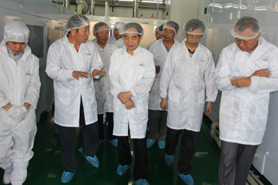 在潔凈明亮的現(xiàn)代化車間內(nèi),駱玉林副省長一行參觀了聚能電力一期50MW太陽能電池片生產(chǎn)流水線作業(yè)以及首批試生產(chǎn)太陽能電池片,仔細(xì)詢問和了解了工藝流程、設(shè)備性能、人員配備和產(chǎn)品技術(shù)指標(biāo)等情況,并聽取了青海水電集團(tuán)董事長唐增科、總經(jīng)理王海青以及聚能電力負(fù)責(zé)同志關(guān)于項(xiàng)目建設(shè)、存在主要問題等情況的匯報(bào)。駱副省長對我公司項(xiàng)目建設(shè)及生產(chǎn)情況給予了充分肯定。他強(qiáng)調(diào),由于受國際太陽能大環(huán)境影響,我國太陽能及光伏產(chǎn)業(yè)發(fā)展遇到了前所未有的困難,希望聚能電力及其上級單位緊緊把握我省新能源產(chǎn)業(yè)發(fā)展的有利時機(jī),立足本身、迎難而上,積極尋求市場,加大技術(shù)革新力度,不斷促進(jìn)企業(yè)健康穩(wěn)定發(fā)展。 (文:陳宏 圖:馬東海