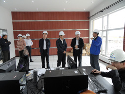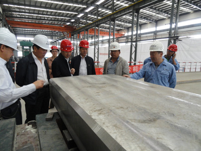 毛占彪副主任一行首先來到青海聚能電力有限公司和青海聚能鈦業(yè)有限公司,進(jìn)入到生產(chǎn)車間和廠區(qū),詳細(xì)察看了正在運(yùn)行的一期年產(chǎn)50兆瓦太陽能電池片生產(chǎn)線及一期年產(chǎn)3000噸鈦及鈦合金熔鑄EB爐,深入了解其設(shè)備技術(shù)水平、工藝流程原料供應(yīng)情況,并察看了以及近期生產(chǎn)的部分成品,全面掌握了其質(zhì)量特性、銷售價格及市場前景等方面的信息。隨后,省國資委領(lǐng)導(dǎo)又驅(qū)車來到大通縣寶庫河俄博圖水電站工地,進(jìn)入到正在加緊進(jìn)行投產(chǎn)前準(zhǔn)備工作的發(fā)電廠房內(nèi),了解了項(xiàng)目概況、實(shí)施進(jìn)度及青海水電實(shí)業(yè)有限公司的發(fā)展歷程。