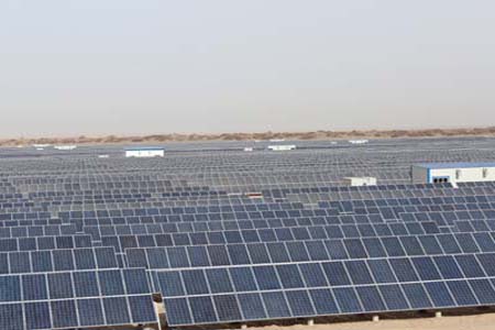 該項目坐落于格爾木市光伏產(chǎn)業(yè)園區(qū),占地約51萬平方米,總投資約3.2億元,總發(fā)電容量20兆瓦,接入系統(tǒng)電壓等級35千伏,采用平板固定式組件陣列,共安裝230瓦多晶硅電池板87080塊,分為20個發(fā)電單元,安裝500千瓦逆變器40臺、35千伏1250千伏安升壓變壓器20臺、35千伏250千伏安站用變壓器2臺、35千伏高壓開關(guān)柜10面、5兆乏動態(tài)無功補償裝置1套、35千伏送出線路780米,及相配套的繼電保護、自動裝置、光功率預(yù)測、通信、計量、計算機監(jiān)控等設(shè)備。電站設(shè)計年發(fā)電量3135萬千瓦時,由信息產(chǎn)業(yè)電子第十一設(shè)計研究院有限公司設(shè)計,江西賽維LDK光伏工程有限公司以EPC總承包方式建設(shè)。