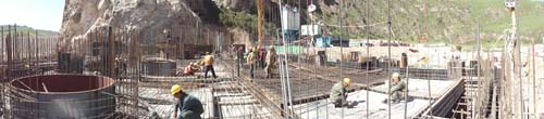 當(dāng)天下午,王總經(jīng)理與中國農(nóng)業(yè)銀行青海分行黨委委員、行長助理馬建華,以及省國資委(省經(jīng)委)災(zāi)后重建現(xiàn)場指揮部的領(lǐng)導(dǎo),共同前往子曲河查日扣水電站、查隆通水電站項(xiàng)目工地調(diào)研。在察看工程現(xiàn)場后,王總經(jīng)理主持召開協(xié)調(diào)會,聽取了施工、監(jiān)理及業(yè)主代表的工作匯報(bào),充分肯定了參建各方在前一階段工作中取得的良好成果,并代表集團(tuán)公司對大家的辛勤努力表示慰問。王總經(jīng)理著重就解決好當(dāng)前影響和制約項(xiàng)目建設(shè)的重要問題提出了具體意見:一是工程承包方省水利水電工程局有限公司要立足大干快干,進(jìn)一步加強(qiáng)勞力的優(yōu)化配置和使用,及時做好機(jī)械設(shè)備的維護(hù)保養(yǎng),改進(jìn)施工組織調(diào)節(jié),堅(jiān)持以發(fā)電廠房項(xiàng)目為主線,積極拓展更多的工作面,加快工程建設(shè)進(jìn)度,確保順利實(shí)現(xiàn)各節(jié)點(diǎn)工期目標(biāo)。二是項(xiàng)目法人玉能電力公司要通過返還節(jié)點(diǎn)工期扣款、暫停抽水燃油扣款等支持措施,緩解施工方因?qū)嶋H抽水量過大導(dǎo)致的資金緊缺的局面,合力保證電站廠房在