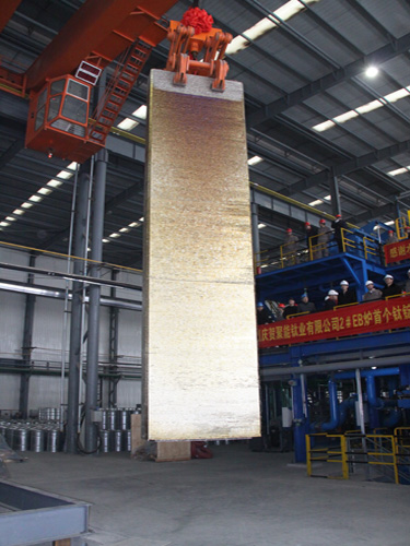 12月14日上午10時30分,青海聚能鈦業(yè)有限公司以熔煉功率為4800千瓦電子束冷床(簡稱EB爐),成功產(chǎn)出重達(dá)15噸的超大規(guī)格純鈦錠,創(chuàng)造了我國鈦金屬鑄錠行業(yè)的新記錄,也標(biāo)志著該公司投資5.4億元的鈦及鈦合金熔鑄項目基本建成,并躍居中國EB爐鑄錠行業(yè)產(chǎn)能之首。