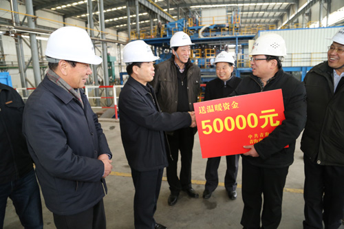 在羊年春節(jié)來臨之際,2月4日下午,省委常委、省政府常務(wù)副省長駱玉林來到青海聚能鈦業(yè)有限公司,親切慰問基建干部職工,把省委、省政府的關(guān)懷送到了企業(yè)生產(chǎn)一線。省政府副秘書長郭臻先,青海省經(jīng)濟和信息化委員會黨組書記、省國資委副主任、黨委副書記劉建青,省總工會副主席劉華芳等領(lǐng)導(dǎo)陪同慰問。