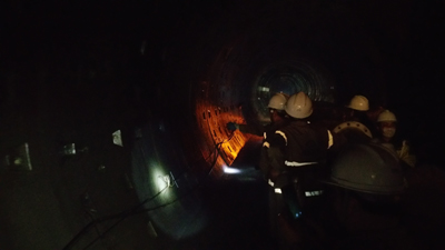 檢查組在察看調(diào)水總干渠出口段工區(qū)后,乘小型軌道車穿越引水隧洞全線,利用三個(gè)多小時(shí)時(shí)間,對(duì)施工掌子面現(xiàn)場(chǎng)的安全設(shè)施運(yùn)行狀態(tài),以及豆礫石回填灌漿、混凝土襯砌、鋼拱架安裝及缺陷處理等施工情況進(jìn)行細(xì)致檢查,了解隧洞出口段F4/F5斷層帶管片變形段施工處理情況,對(duì)各施工單位進(jìn)一步合理分工,加強(qiáng)協(xié)調(diào)配合,強(qiáng)化現(xiàn)場(chǎng)管理,狠抓安全質(zhì)量,加快推進(jìn)工程建設(shè)提出了具體要求。