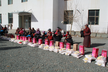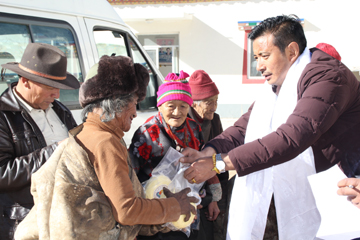 幾天來,該公司黨委書記、總經(jīng)理白瑪然丁,黨委副書記、紀委書記、工會主席張貴良,帶領工會、辦公室、黨群辦等部門負責人,分別慰問了扎西大同敬老院、民主路敬老院、新寨敬老院、東風村敬老院、隆寶鎮(zhèn)敬老院的56名孤寡老人,并給他們送去了價值2.8萬余元的酥油、炒面、冬裝藏袍、暖瓶等生活必需品。每到一處,老人們都露出了幸福的笑容,紛紛伸出大拇指感謝黨組織的真情真意和關心關愛。一位雙眼失明的老奶奶更是紅了眼眶,嘴里不停的念叨,感謝玉樹電力公司,讓她感覺到了家的溫暖。一位孤寡老爺爺不停地感謝黨和政府,感謝玉樹電力公司,并說看到他們送來的生活用品,自己感覺今天像過年一樣。在了解了實際情況后,白瑪然丁同志自已又掏了400元錢塞到兩位生活特別困苦的老人手中。他說:尊老愛幼是中華民族的傳統(tǒng)美德,今后企業(yè)還會繼續(xù)創(chuàng)造條件,盡力為群眾解決實際困難,用自己的行動傳播正能量,讓社會弱勢群體感受到來自黨和社會的關心與愛護。